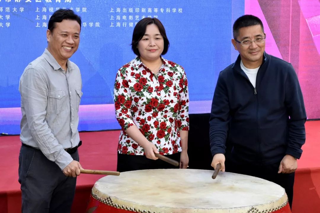 仪式尾声,胥燕红书记、顾炜书记、俞振伟书记和沈蓝校长共同鸣锣打鼓,为此次活动隆重开市,未来的时代,将是一个文化消费日益繁荣、文创产业蓬勃发展的时代。今天的活动将见证主办方逸夫职业技术学校这所文创特色的学校面对时代教育的赤诚和办学的信心,也希望借此建立上海市艺术类院校与区域文创资源市场的对接,创造交流合作的重要平台,从而积极拓宽学生未来发展道路,与新的行业发展趋势共同成长。