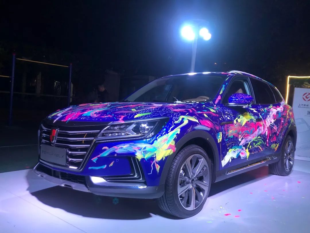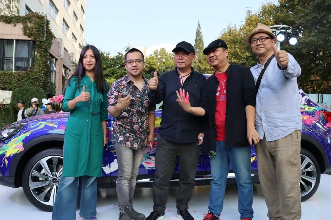 红跑道,绿操场,轻柔爵士缓慢流淌,白色展台上一辆崭新荣威克莱因蓝MarvelX在午后的暖阳下静静流光溢彩,在华东师范大学博士生导师王远教授、上海美术学院硕士生导师王冠英副教授、德荷当代艺术中心创始人当代水墨艺术家吴笠帆、海派水彩画家朱开荣、职业画家万琼五位艺术家联手的随性自由挥洒下,焕发出新的活力和生机。