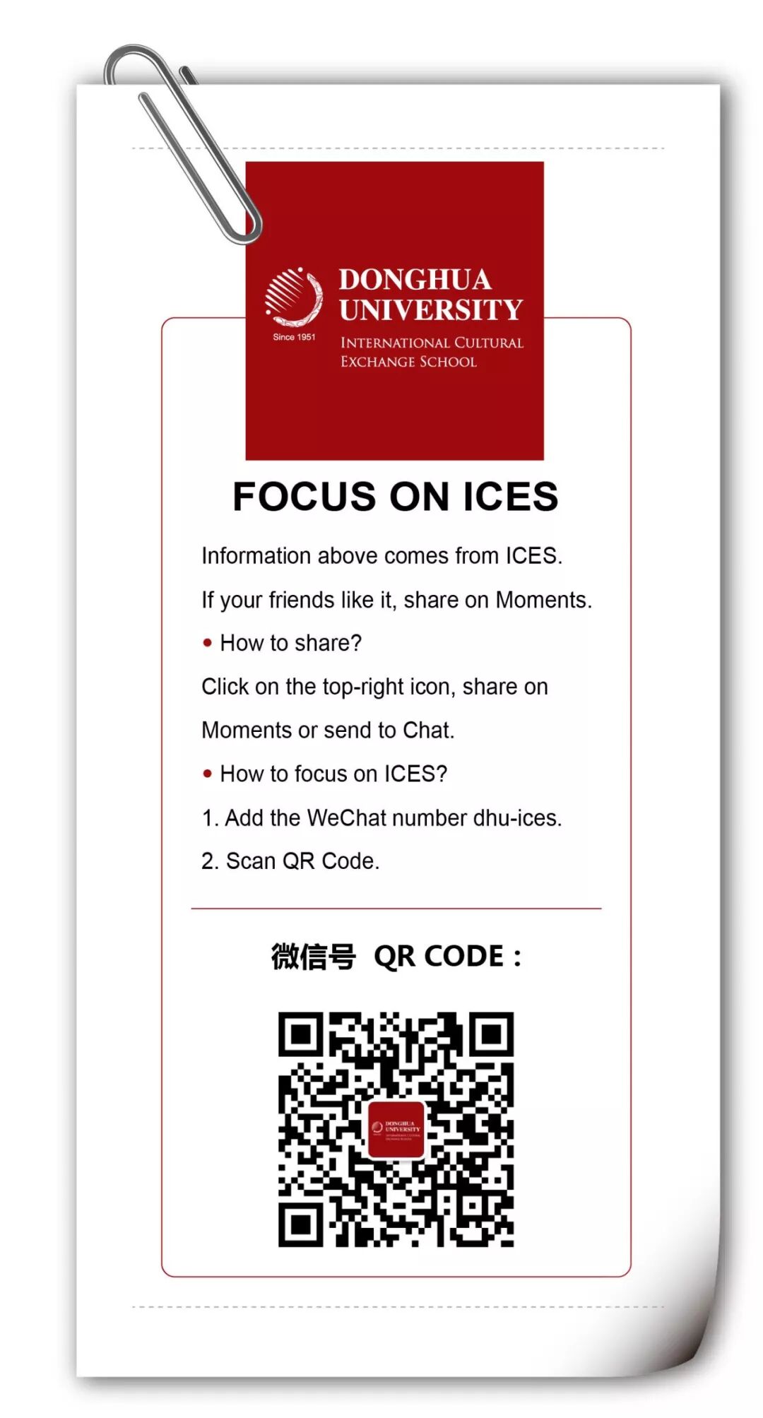 Click“东华大学国际文化交流学院”to join us!