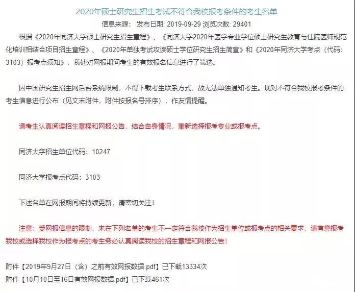 围观这两所学校的官方通知,因没认真看招简和网报公报而被取消报名资格的人不在少数呢!所以,小编建议已经预报名的同学去报名院校官网或是研究生院网站查看一下有没有相关通知,正式报名的同学也要注意报考院校招生条件。