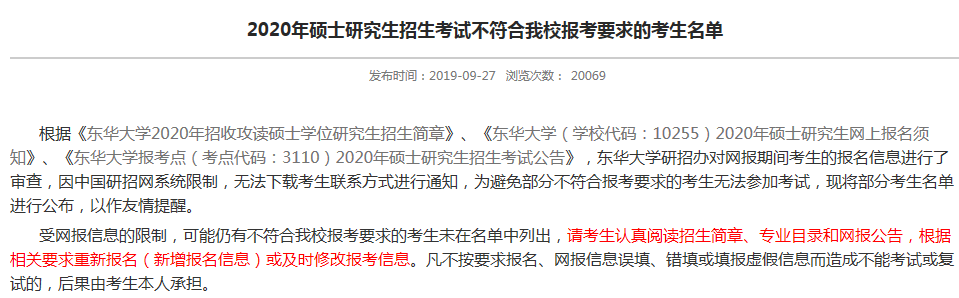 以上公布的只是报考条件不对的同学,文中还重点指明,受网报信息的限制,未在下列名单的考生不一定符合学校作为招生单位或报考点的相关要求。