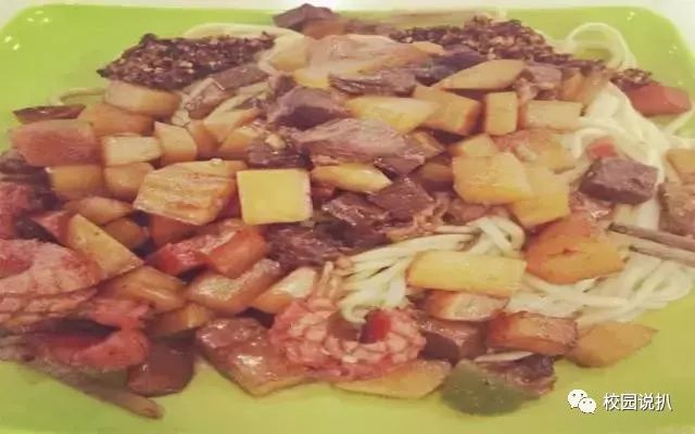 相较于正常的小盘鸡的口味来说,口味稍微偏辣了一点,土豆又多了好多。能在校园里面能吃到这样好吃的菜,难怪每天都排长队。听说小盘鸡与面更配哟。