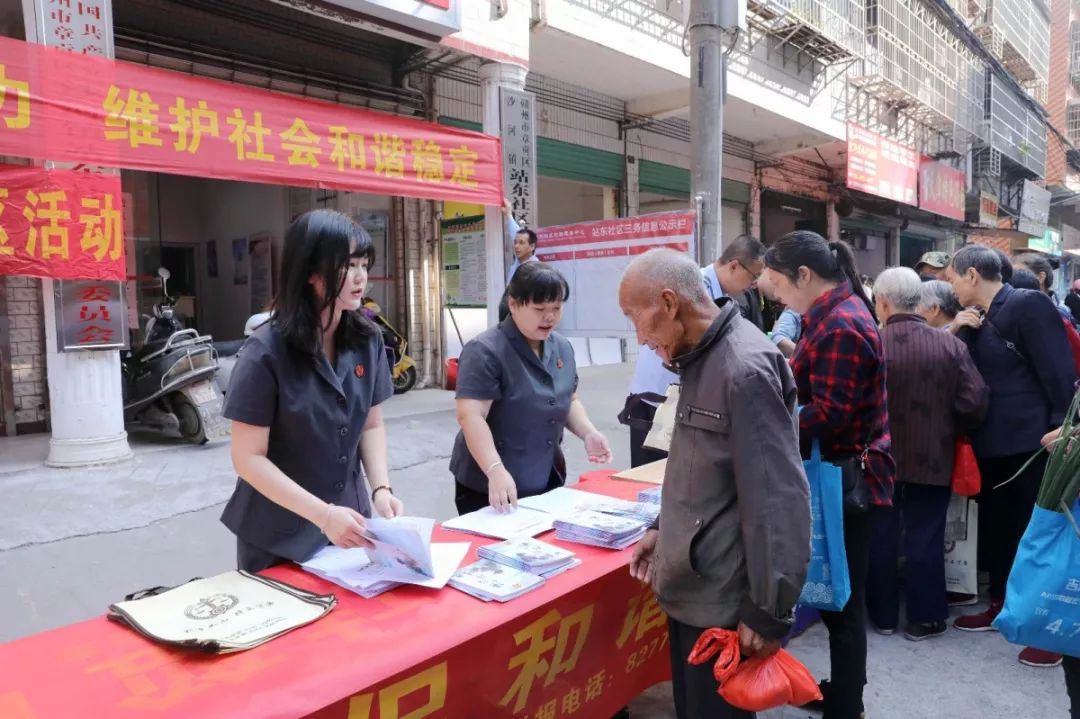 10月17日至18日,章贡区法院联合区市场监督管理局组织工作人员来到章贡区沙河镇站东社区、厚德路社区小南门开展暴力传销涉恶案件以案释法宣传活动。