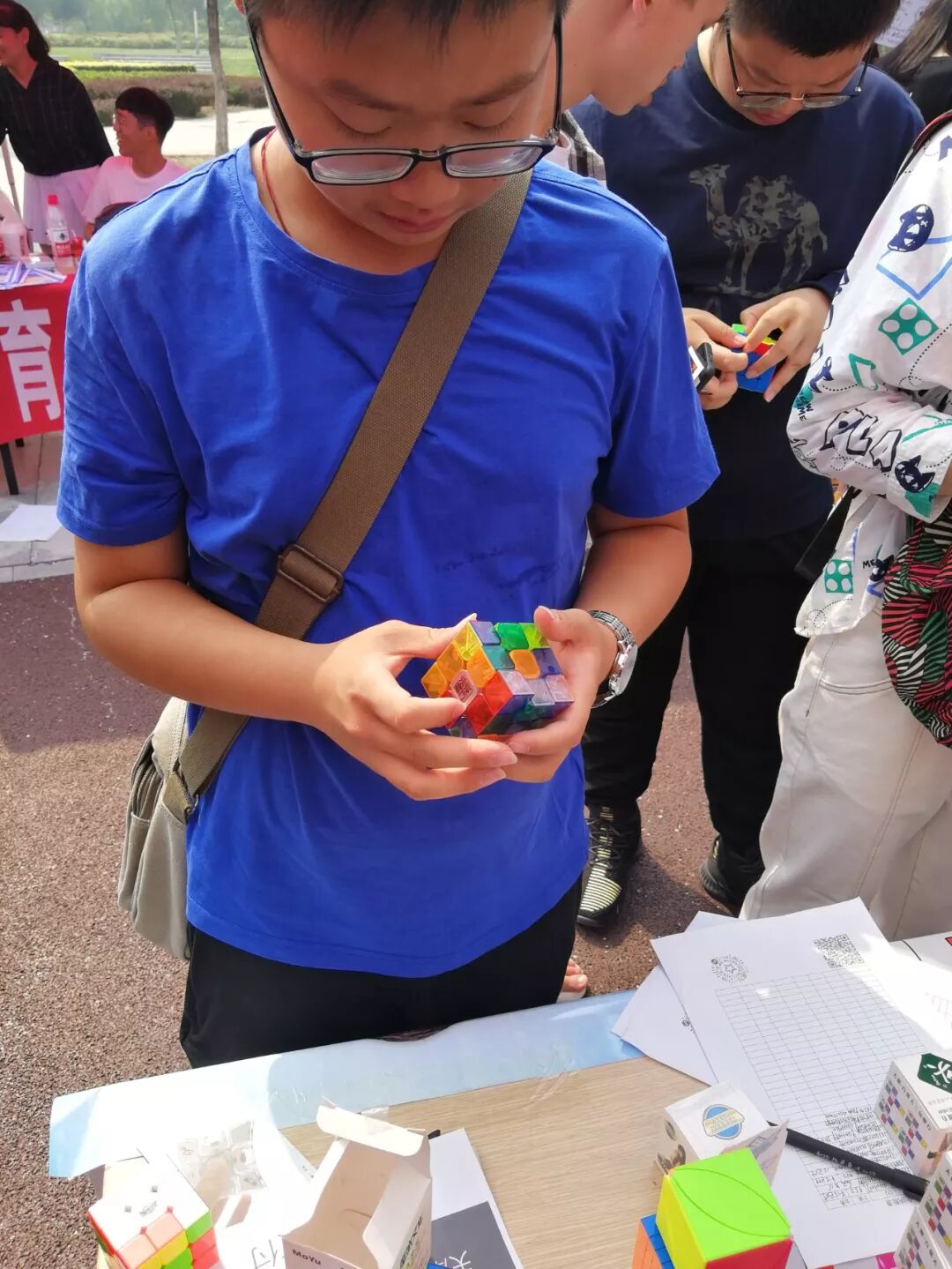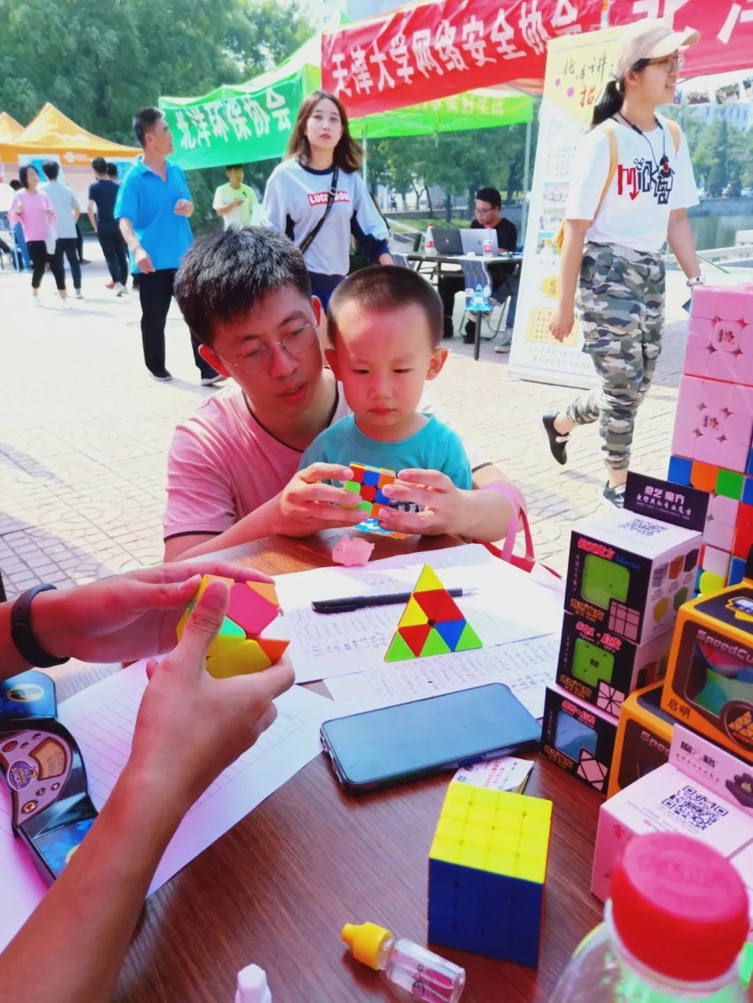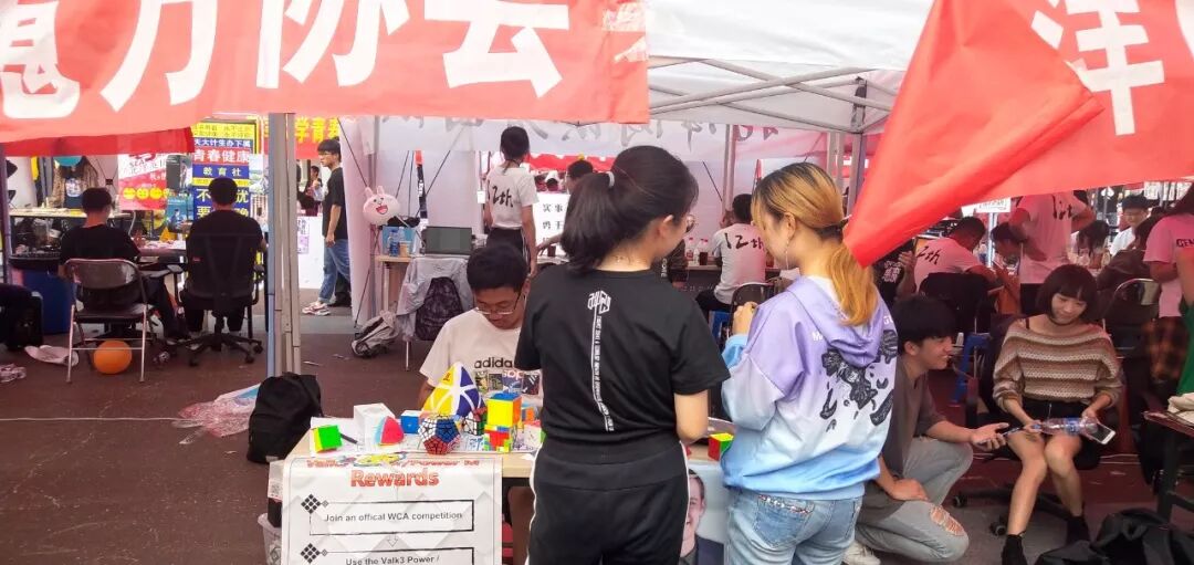 天津大学魔方协会,从09年起就是天津地区魔方运动的领跑者,而对社团来说最重要的,莫过于吸收新的成员,保证社团的活力。2019年9月21日,天津大学魔方协会在北洋园和卫津路双校区开展纳新。我们为新生们准备了徽章、明信片等纪念品,并展示了多种魔方的还原,吸引了大批魔方爱好者。下午四点左右纳新结束时,已有超过70人填写了魔方协会的报名表,加入了魔方协会,其中10人左右有WCAID。感谢奇艺魔方格公司对我社纳新的大力支持!