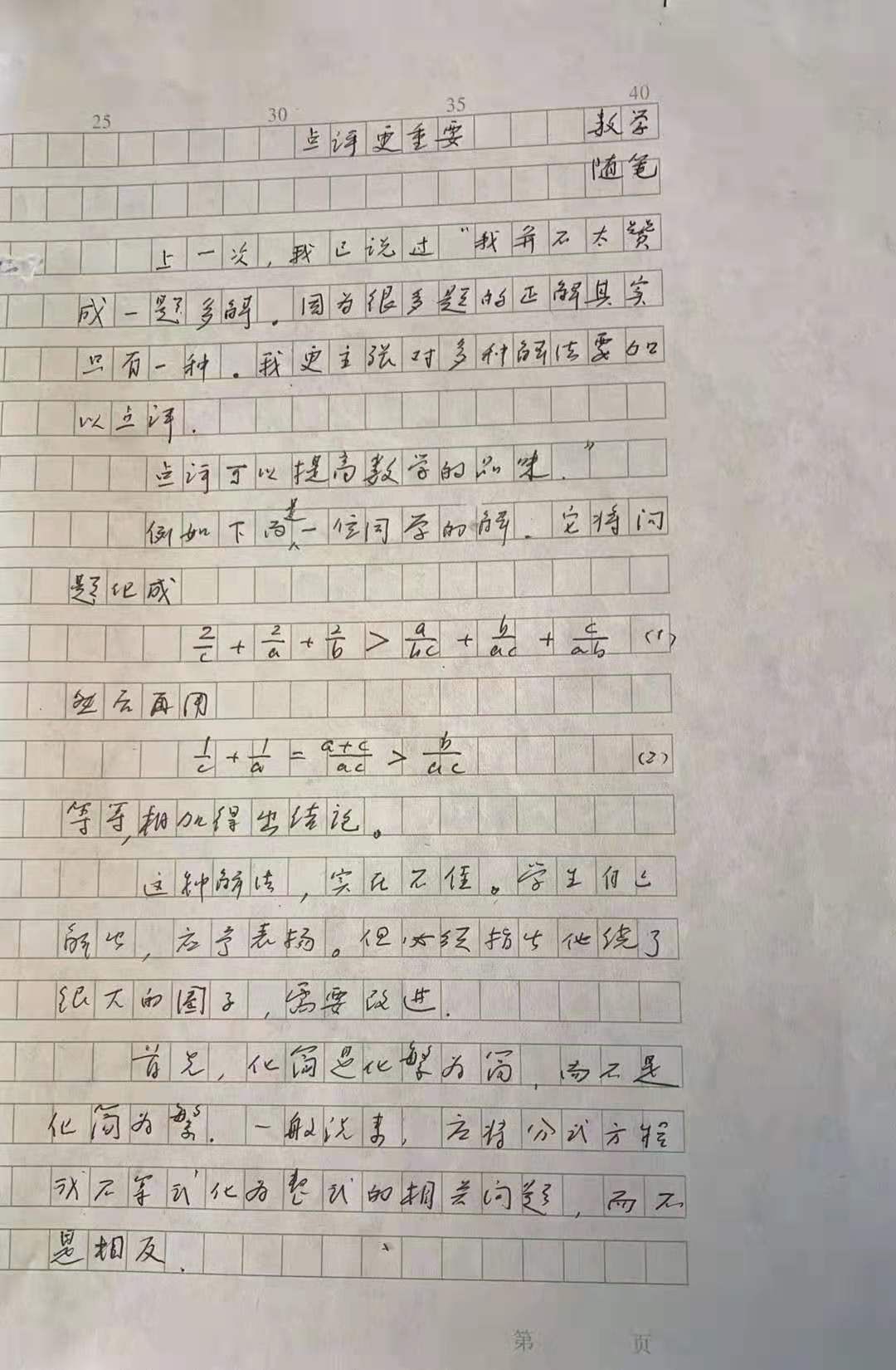单墫教授数学随笔(20191005,解题,不提倡“独门武器”和“怪招”)