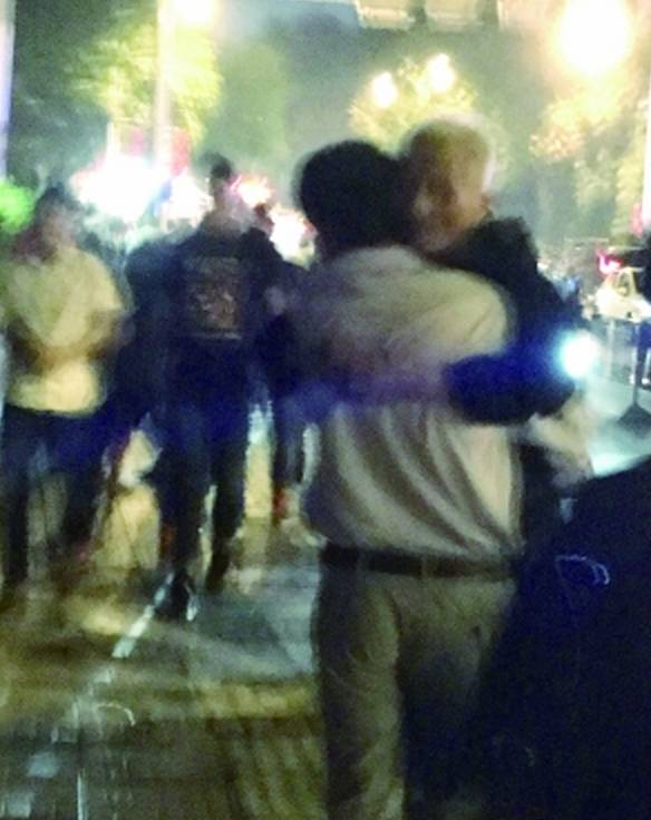 就像小时候骑在父亲肩膀上看戏一样,儿子抱起了瘦小的父亲,让他能不费力看见。