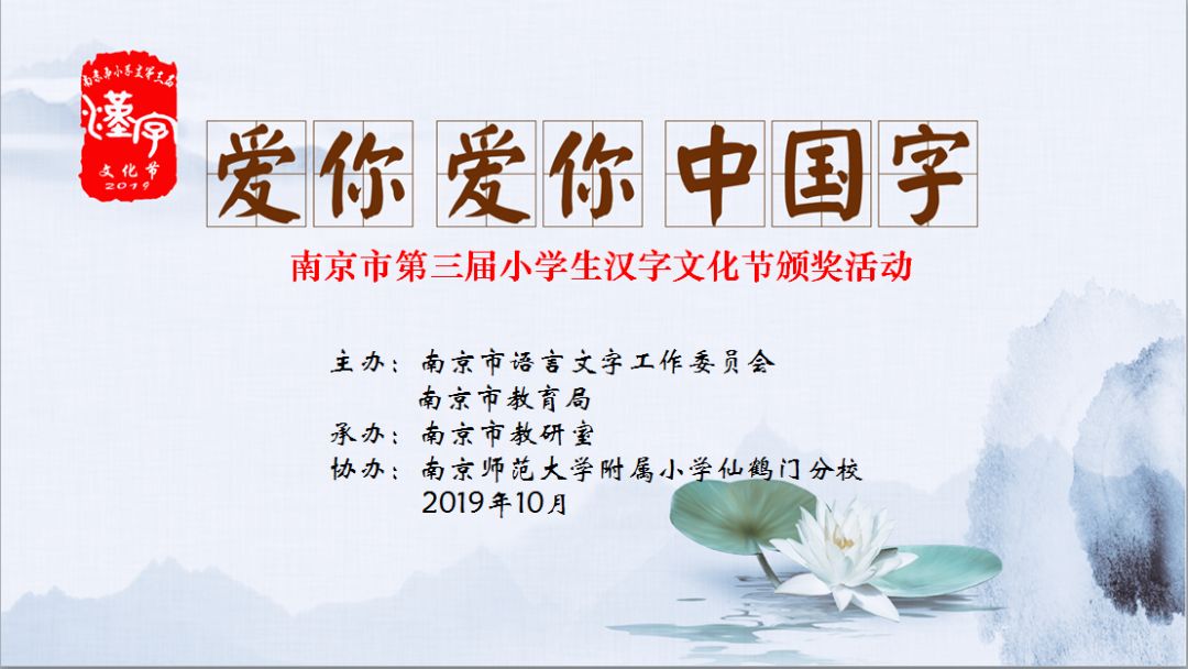 汉字是中华传统文化的载体。研究汉字,让孩子去感受汉字的内涵与魅力,有助于孩子更好地传承与发扬中华传统文化。在这金风送爽、丹桂飘香的季节,2019年10月17日,由南京市教研室主办、玄武区教师发展中心承办的“爱你爱你中国字”——南京市第三届小学生汉字文化节优秀节目展演暨颁奖典礼在南师附小仙鹤门分校举行。