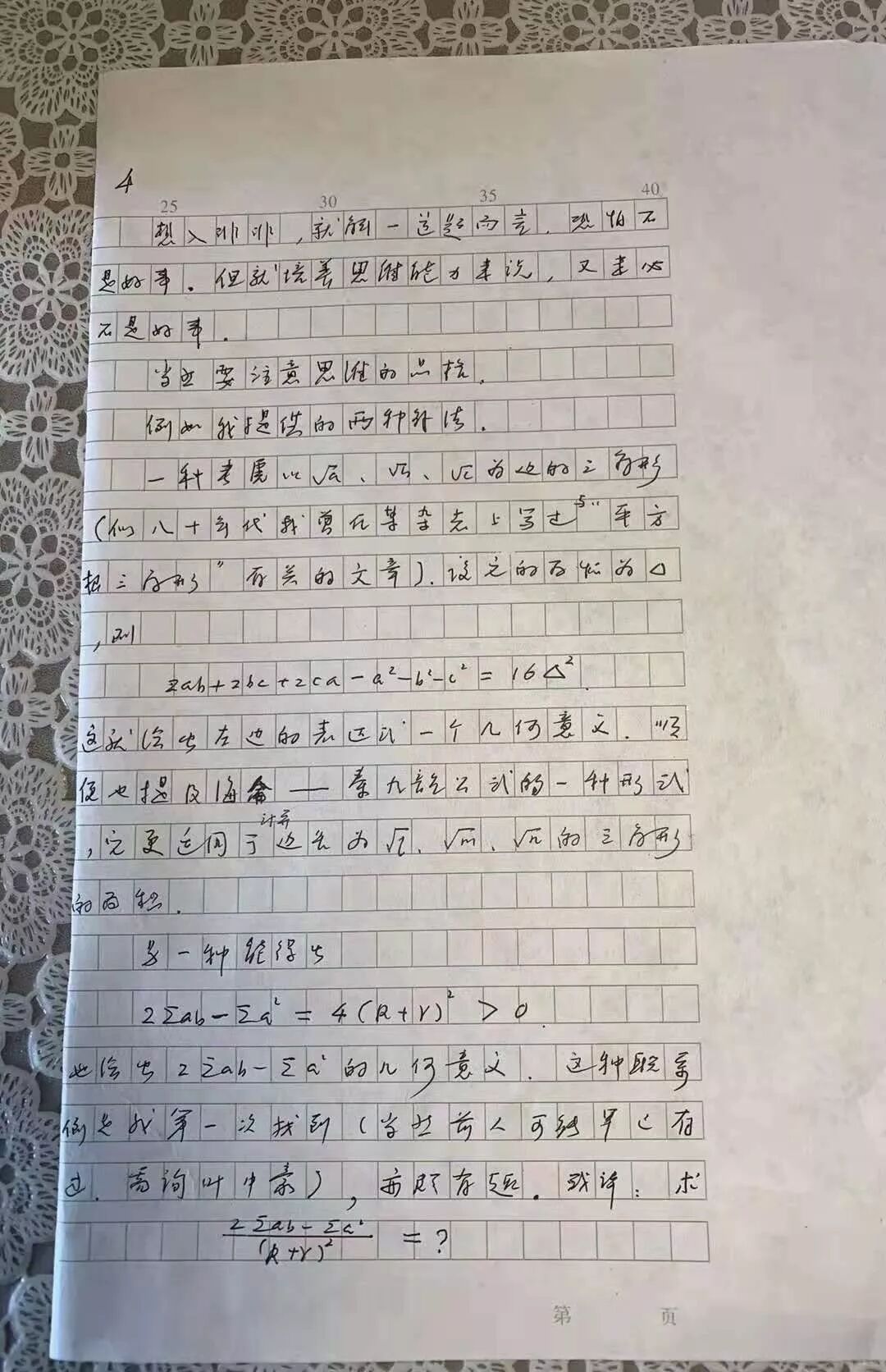 单墫教授向量法解一道几何题(“老封的题,我的解”手稿2)