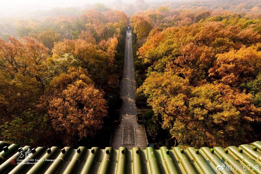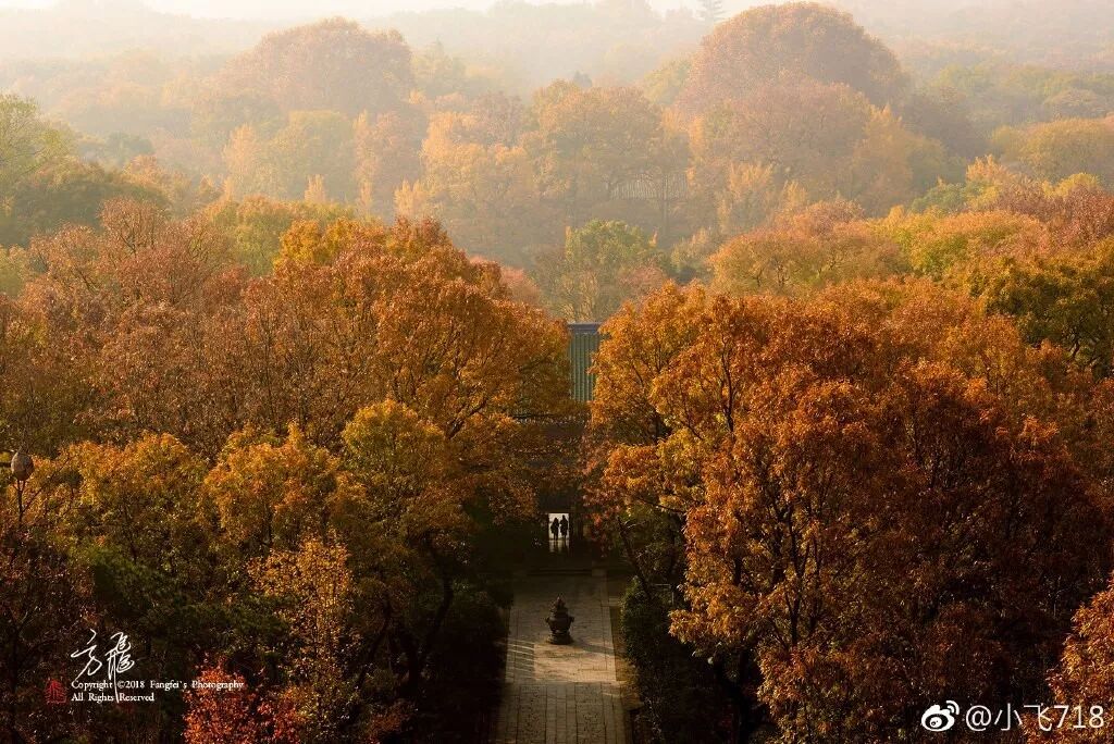 11月左右的灵谷寺可谓是金秋绚烂,站在塔顶望去,一片或深或浅的黄色染遍山野~