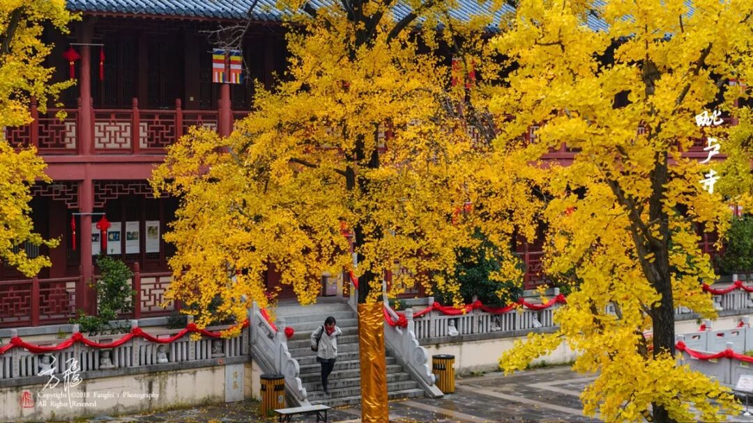 每年秋天,栖霞寺大殿前的这两棵老银杏一黄,南京城便陆续被金黄铺满。