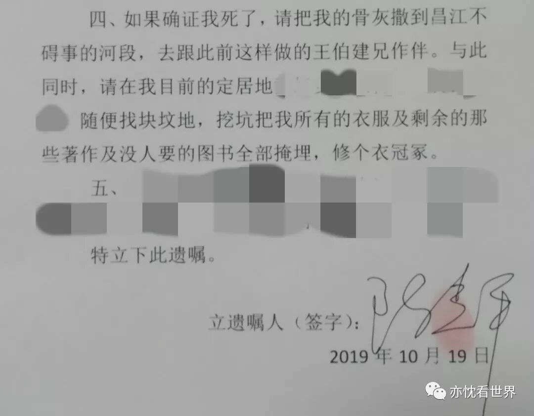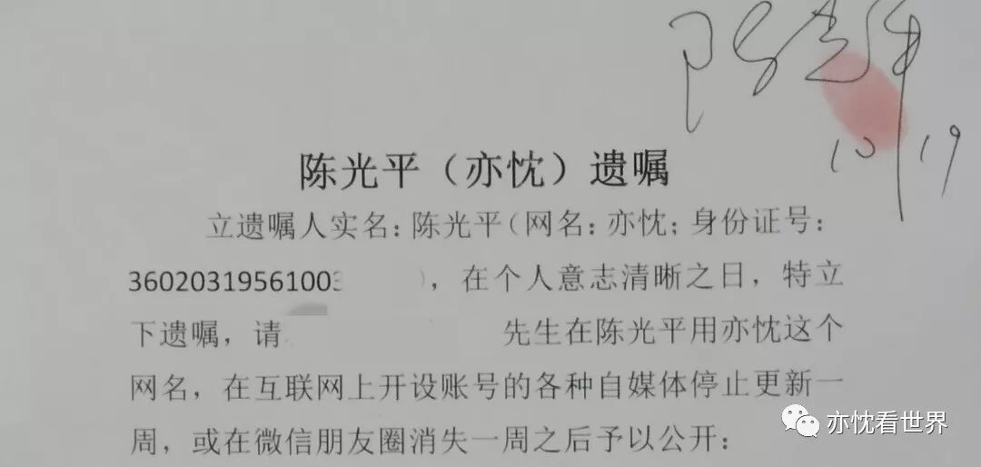 下为亦忱托付老友适时发布的遗嘱