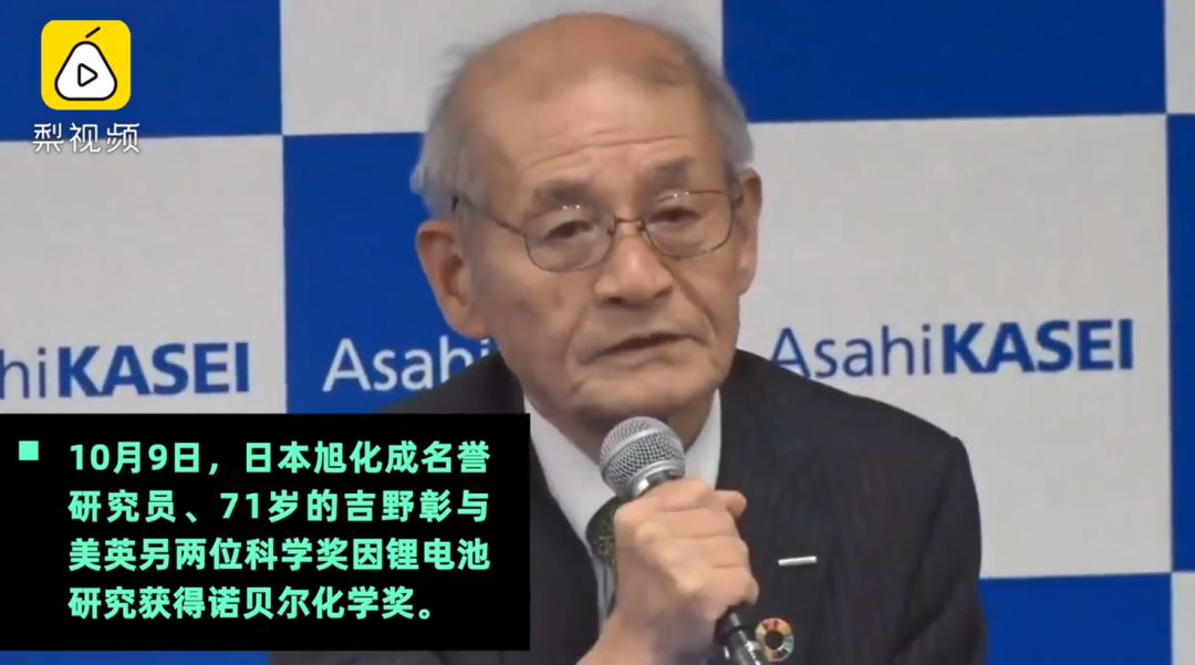 与古迪纳夫一同分享今年化学奖的吉野彰,是第27位获得诺奖的日本人。在接受采访时他说:“对于我自己来说,好奇是研究锂电池的最大驱动力”。
