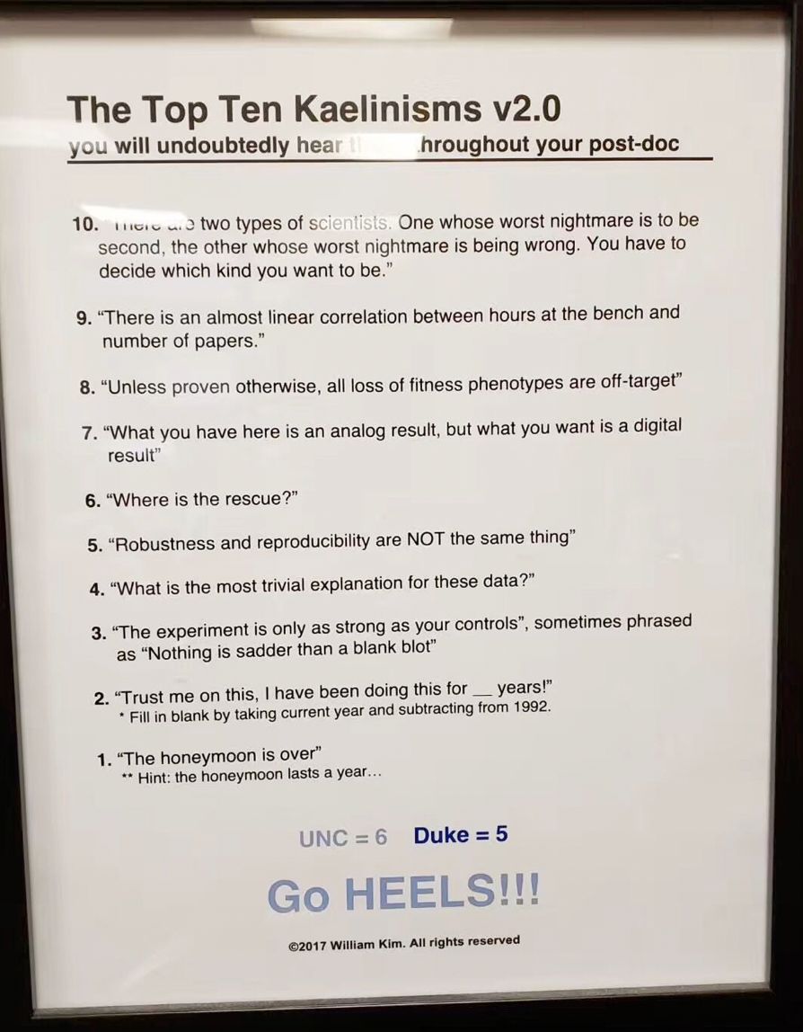 凯林实验室成员甚至将凯林对研究的要求整理出“十条规诫”,现在已经到了2.0版。