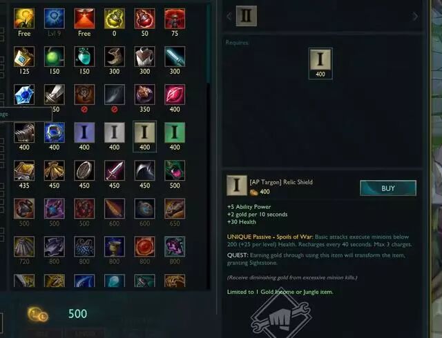 (如果击杀过多小兵,会减少获得的金币收益,工资装和打野装总共只能出一件。)