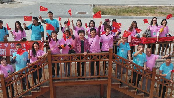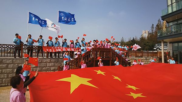 随后,全体校友共同拍摄完了“我和我的祖国”快闪活动,飘扬的巨幅五星红旗,悠扬的吉大学子歌声,为祖国70周年华诞献礼。在进行紧张激烈的拔河比赛后,2019年迎新联谊会在浪bar音乐餐吧隆重举行。校友会副会长梁宝荣受校友会的委托,欢迎2019届的毕业生加入到大连吉大校友会这个大家庭。梁师姐介绍说,经过各位校友们的共同努力,大连吉大校友会的影响力和凝聚力在不断提升。“这些成绩来源于校友会组织机构完善,各项制度健全,拥有一大批热爱校友会工作、无私奉献的校友,他们奉献财力、人力、精力、社会资源等,在校友会中形成了一个爱的接力棒。我希望各位新加入校友会的校友们也要接好接力棒,为校友会这个大家庭添砖加瓦,也祝大家在大连大展宏图!”