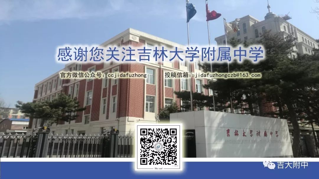 美好的吉大附中人在新时代里,迈着自信、勇敢、坚毅的步伐,向着希望、向着明天、向着“教育面向全体学生”的理想,向着“锐意创新、果敢进取”的信念,信步走来!让我们用智慧诠释力量,用坚守彰显担当,在教育形式日新月异的今天,共同描绘吉大附中教育的壮丽蓝图!