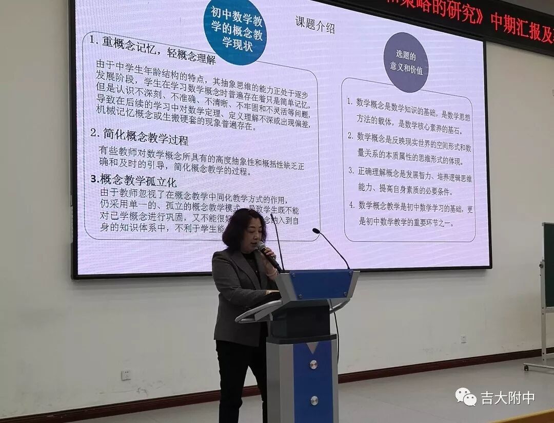 在观摩长春市数学教研室课题中期汇报活动中,吉林省教育科学院杜亚丽副院长、院长办公室主任张胜利博士、科研管理办公室周颖华主任作为课题中期工作的评审专家出席了本次活动。吉林大学附属中学王显峰校长也亲临会场,对出席本次活动的领导表示衷心的感谢和热烈的欢迎。