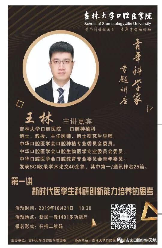 “前沿科学校园行,青年学者面对面”——吉林大学口腔医学院创办口腔医学青年科学家专题讲座