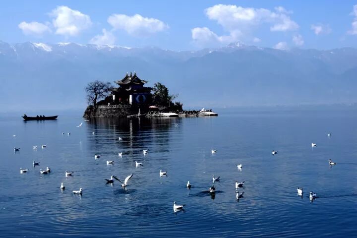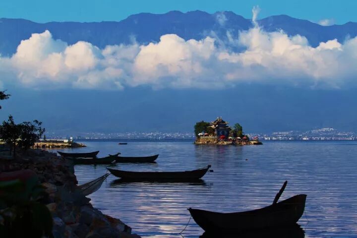 洱海是一个风光明媚的高原湖泊,呈狭长形,南北长40公里,面积约240平方公里。在洱海最南端的团山,有一座洱海公园,是观赏苍山洱海景色的好处所。