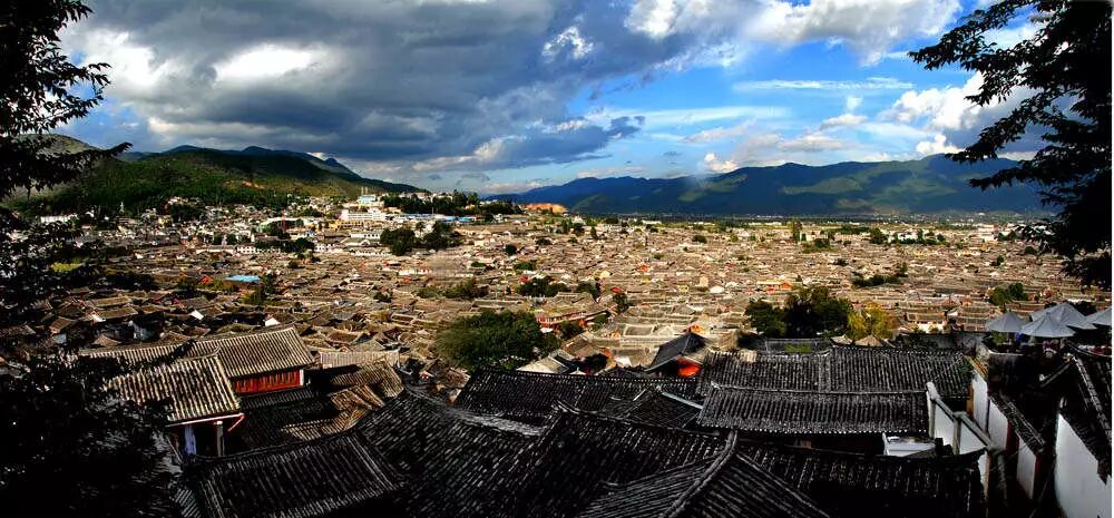 古城是茶马古道上最著名的城镇之一,已有八九百年历史。古城内木楼青瓦,古街石巷,小桥流水,站在古城东大街上,举头即可遥望玉龙雪山。中国以整座古城申报世界文化遗产获得成功的两座古城之一,是中国民居中具有鲜明特色和风格的类型之一。 《一米阳光》、《木府风云》等影视剧都在此取过景。
