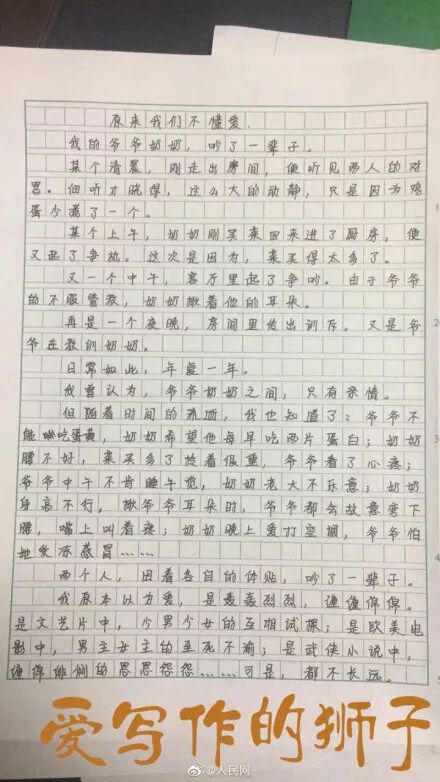 杭州启正中学一位老师布置了一篇命题作文《原来我们不懂爱》。