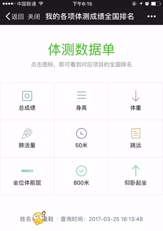 每年辛辛苦苦测完的每一项体测数据,都值得给它一个名分。简单查询如下: