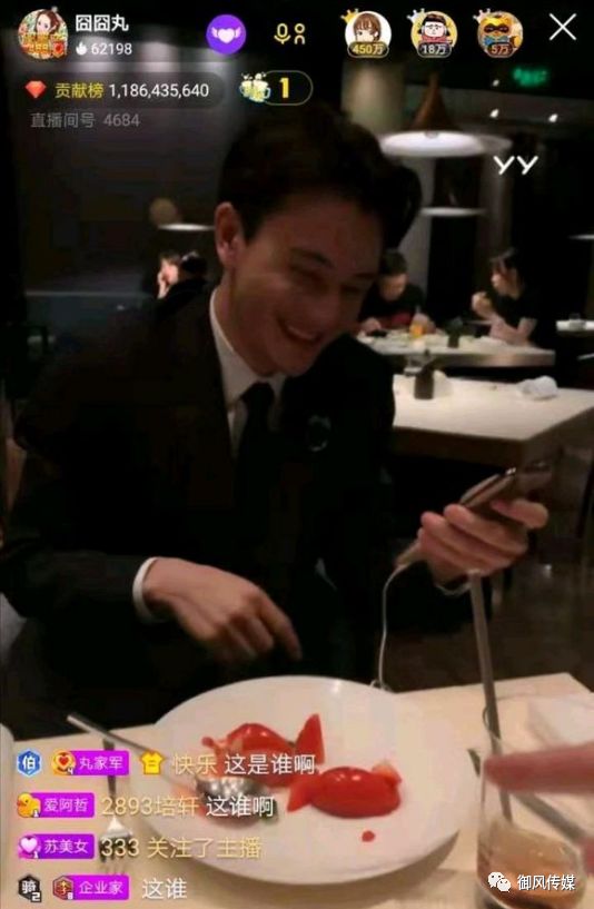 囧囧丸晚上手机开播,视频中出现一年轻男子,公屏有人打字说是团座。据悉这是服务员,丸子是去参加某奢侈品牌的发布会,旁边配的男助理。这聚会绝对是白富美的盛宴,看着都养眼!