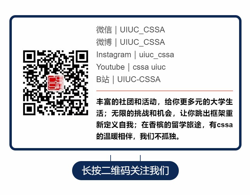 Contact Us新浪微博:UIUC_CSSA邮箱:uiuccssaprad@gmail.com欢迎来稿至uiuccssa15pr@gmail.com,投稿相关问题请回复‘文稿’提取详细说明或私信主页君