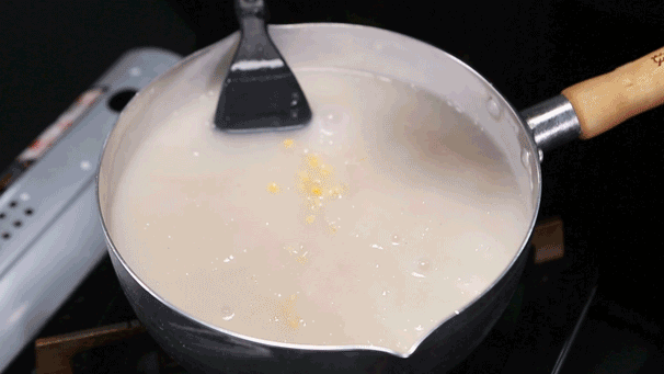 倒入锅中,滤去泡沫,放入山药不停地搅拌