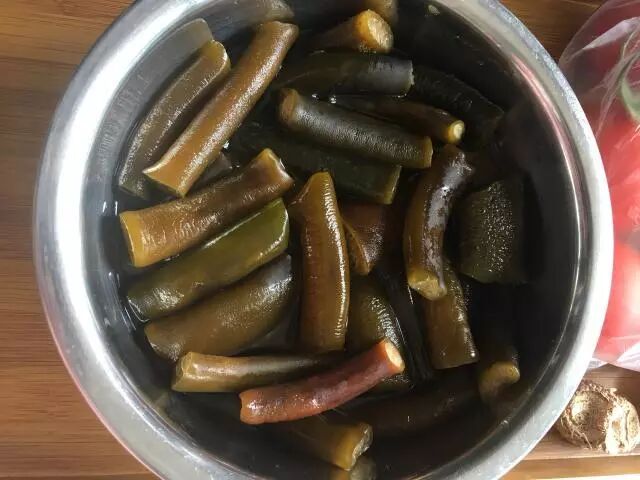 需要的食材和配料:海笋1把,黄瓜半根,芝麻油1勺,白糖2勺,陈醋3勺,盐1勺,生抽3勺,小米椒2个,香菜1把,大蒜3瓣。具体做法和步骤:第一步:随意抓一把海笋干,用清水浸泡两个小时。