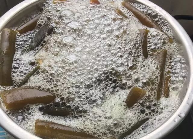 第二步:随后将浸泡好的海笋煮沸,捞出用冷水冲洗沥干备用。