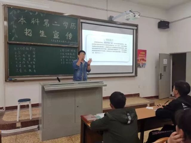 在宣讲会上,分别从会计、人力资源管理、行政管理、工商管理、工程管理、音乐教育、美术教育七个本科二学历专业详细的向学生介绍就读的专业优势,就业回报,公务员事业单位考取优势等方面,各班级联络员认真聆听,并做好重点要点记录,以便向班级同学介绍本科第二学历相关内容。班级联络员也表现出了对本科第二学历浓厚的兴趣,积极提问,踊跃发言。