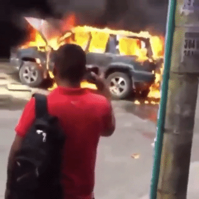 一辆熊熊燃烧的汽车突然爆炸,周围的市民惨遭炸伤