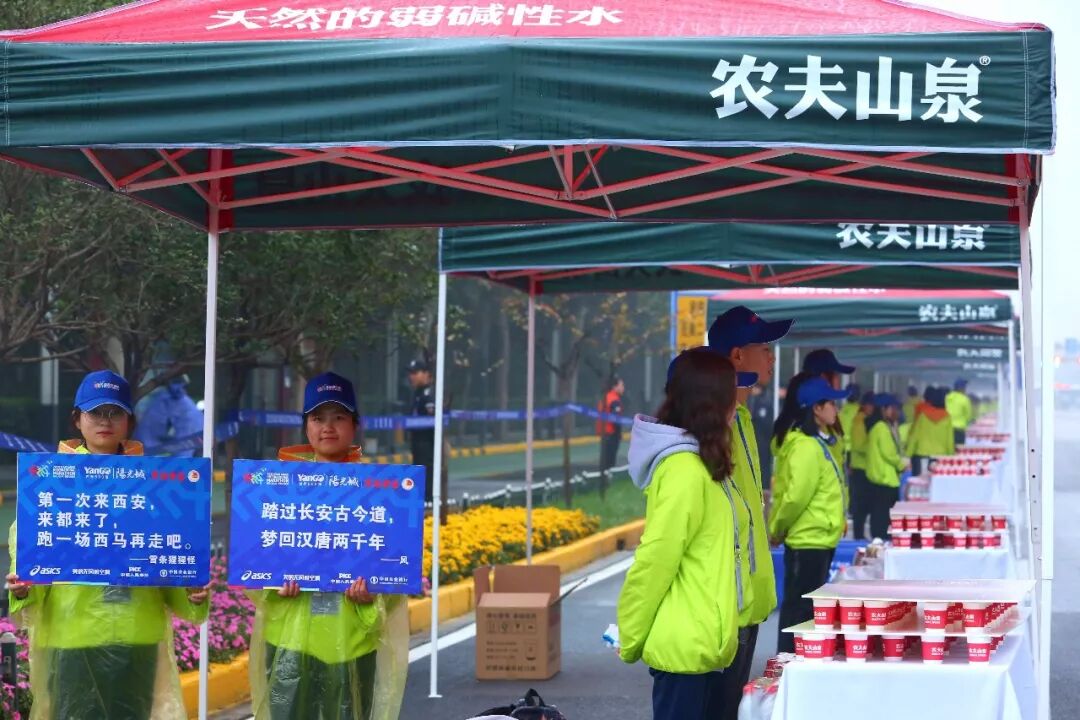 而在2019西安国际马拉松赛道上,农夫山泉也设置了诸多补给站,为参赛选手提供了充足的农夫山泉饮用天然水,向大家传递与国际接轨的“科学补水”理念,贴心保障选手们的饮水安全。
