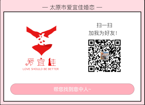 爱宜佳婚恋,用高效的方式为单身朋友提供专业化婚恋服务,助你快速找到爱情的果实!专注于太原本地,专注于中高端用户、专注于线下面对面。