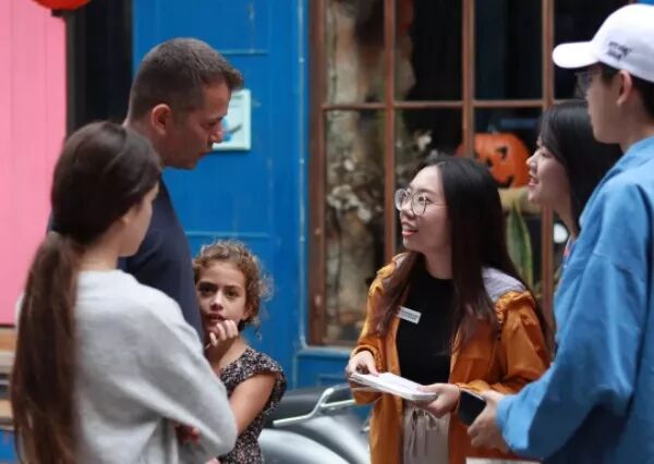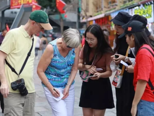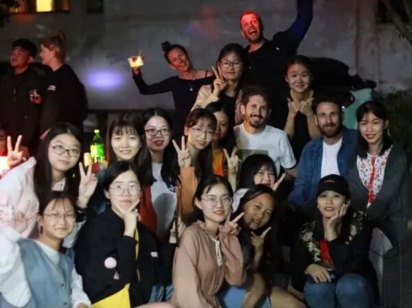 中午去西街邀请外国友人参加晚上的烧烤晚会。