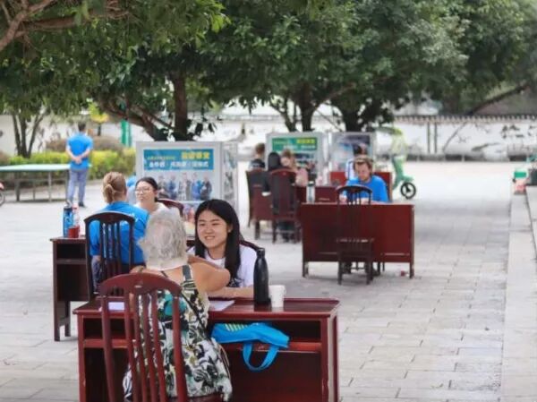 在恭城站下车后,队伍搭上了大巴车,对一路的风景都感觉很“稀奇”,四周环山,空气清新,建筑古典,恍如仙境;