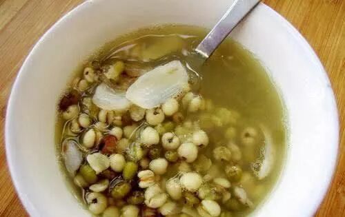 准备材料:50克薏米,25克绿豆,100克鲜百合,白糖适量。