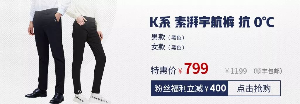 K系列的宇航休闲裤,也采用了气凝胶材质。修身、保暖,颇有些韩国欧巴的意思~