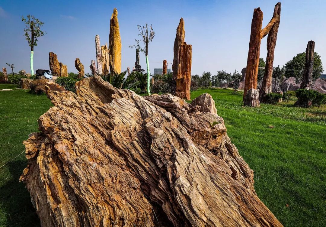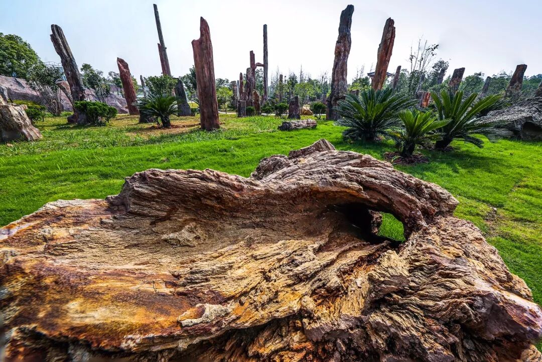 从世界各地汇聚到这里的树化石形态各异、栩栩如生的树化石