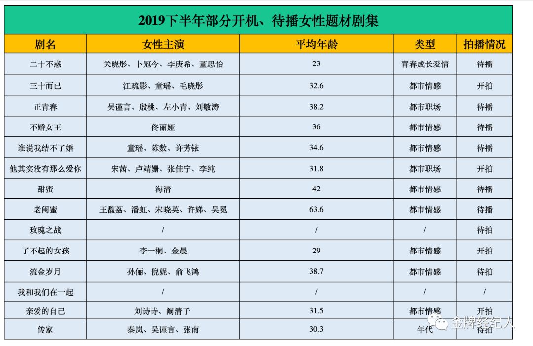其实目前正在筹备中的这些戏已经显露出这个问题了,对女性的描写呈现出同质化问题。不管是20+的女大学生,还是30+、40+的职场女性,角色设置都倾向于“高级感”和“精英感”,比起那些普通女性更受创作者的青睐。