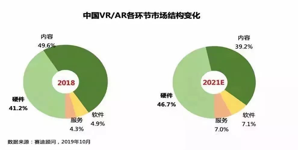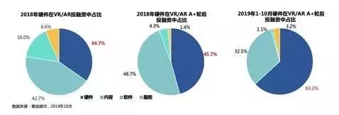 硬件作为VR/AR产业的基础环节,资本对其的态度能够在一定程度上反映整个产业发展状况,2017年产业进入低谷,硬件比重下降,而2018年硬件比重大幅上升表明市场回暖,预计未来市场将进入稳定发展阶段,硬件将成为布局VR/AR市场的利好机会,未来将引领市场实现持续增长。