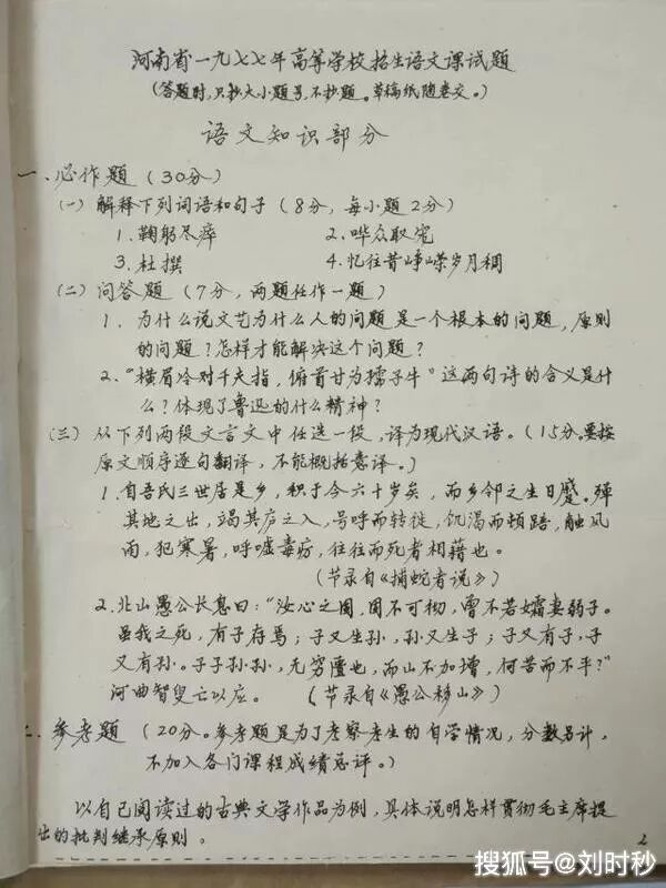 有网友翻出了当年的试卷,表示题目都“弱爆了”,恨没能早生四十多年