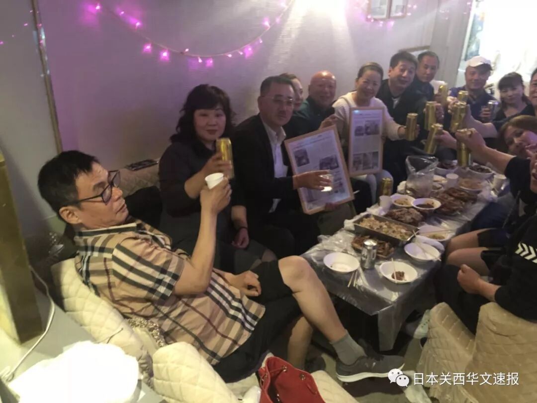 而以来自中国黑龙江省方正县为主的大阪归国者后代则在旗袍皇后的酒吧举行了聚会。大家手捧日本《关西华文时报》的镜框,共同祝愿中日友好万万年。大家吃的是东北菜和大煎饼,归国者及其后代,是那场战争的受害者,也是中日友好的见证人。