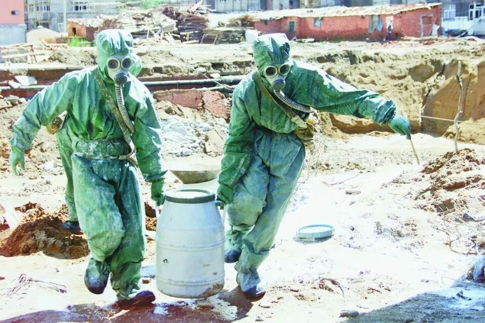 佩戴防毒面具的日军日本遗留在华的这些炸弹包括了常规炸弹和毒气弹,甚至还有生化武器。例如在黑龙江兴隆镇一地,日本关东军就建设了超过130座地下弹药库,并存放有危险性极高的弹药。在日本投降之后,关东军在撤离前只是将这些弹药库仓促掩埋,也并没有告知中国方面这些弹药库的具体信息,导致直到新中国成立后,仍然有不少人民被留存的炸弹所扎伤甚至致死。