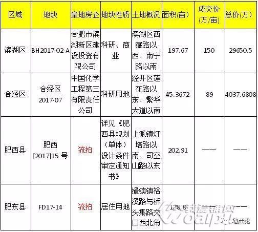 最终,滨湖区BH2017-02-A号地块和合经区2017-07地块成功出让,而肥西[2017]15号地块和肥东FD17-14地块因未达底价惨遭流拍。
