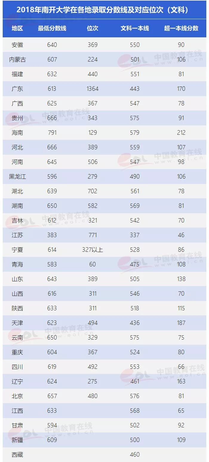 以下是南开大学2018年在各地录取最低分数线及对应位次,供考生参考。