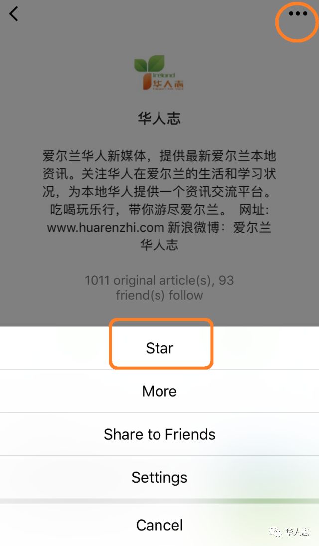只需三步非常简单:①点击文章开头“华人志”蓝字→ ②点击右上角的“三个点” → ③再点击“设为星标” 就ok啦。