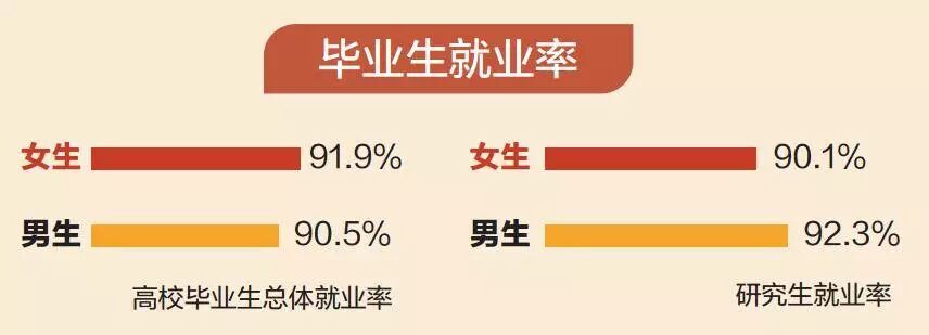 从统计数据看,女性毕业生总体就业率要高于男性,女性毕业生就业率为91.9%,男性毕业生为90.5%。南国早报客户端记者分析发现,虽然本科和专科阶段,女性毕业生就业率高于男生;但在研究生阶段,男性毕业生其实更好就业,其就业率为92.3%,高于女性研究生90.1%的就业率。