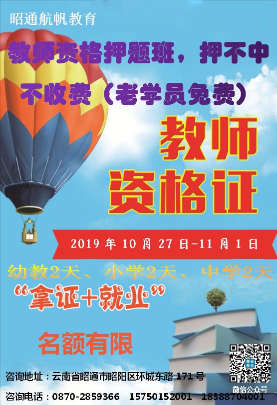 在昭通航帆报D类培训没教师资格免费培训一周教师资格!10月27-11月1日(中间有31,合计六天,加两个晚上合计一周!)